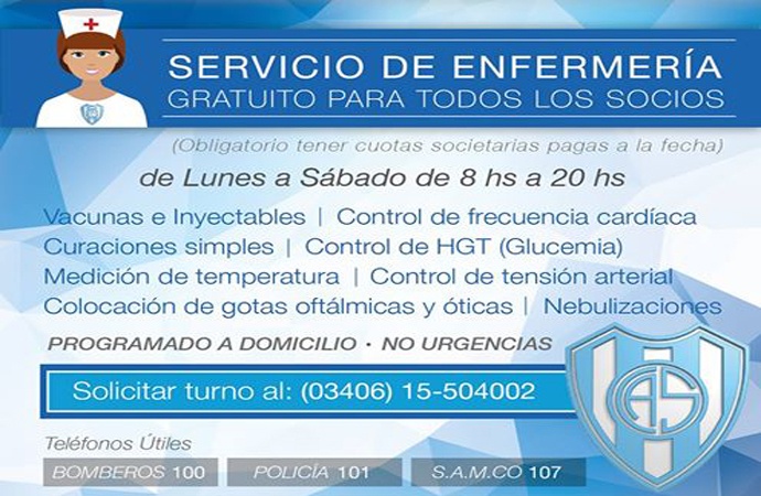 Parece que se viene cargado el último tramo del año en el Club Atlético Sastre. Es que en los últimos días se anunció el lanzamiento del nuevo servicio de enfermería para socios. «Surge de la posibilidad de brindarle a los socios un nuevo beneficio. Ya se había probado y ahora se reflota. Es una atención médica que va a estar disponible para quienes tengan al día el abono. Hay que aclarar que no son urgencias, sino que se perfila a trabajos de curaciones, inyectables, colocado de botas, controles de glucemia y presión arterial, entre otros», explicó Betiana Banchio, encargada de la Secretaría de Deportes de la institución, en El Primer Mate de la Mañana – programa que se emite de lunes a viernes de 7 a 9 por Radio Cronos -.