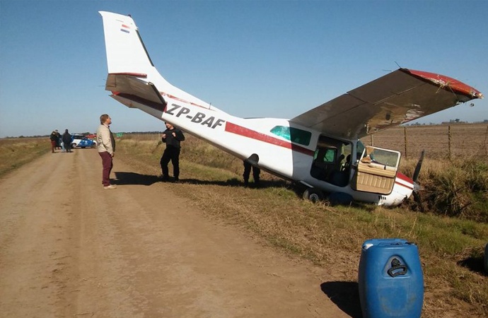 Cerca del mediodía de este martes, una avioneta aterrizó de urgencia en inmediaciones a la localidad de Los Cardos. De acuerdo a las primeras versiones, el aeroplano debió descender sobre un camino rural de forma forzosa y terminó contra una cuneta. En el mismo se dirigía una persona a la que esperaban dos autos y se dieron a la fuga tras descargar la mercadería que transportaban. La Policía trabaja para esclarecer el hecho. La avioneta tenía bandera paraguaya y una denuncia de robo.