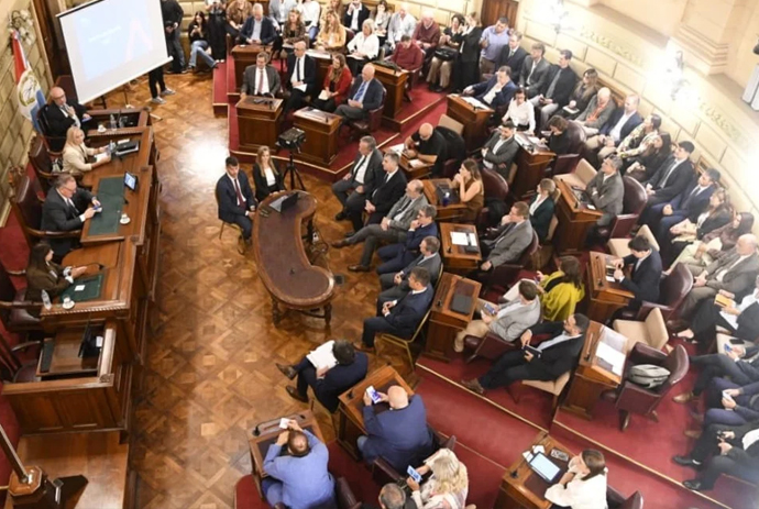 En el recinto, agrega, legisladores, funcionarios provinciales y representantes de entidades empresarias y de la producción, analizaron el proyecto que ya aprobó Diputados.