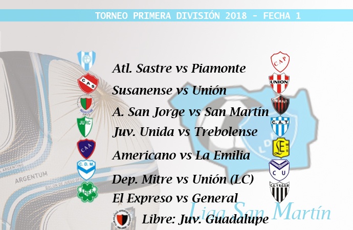 Finalmente anoche se sorteó el fixture del torneo de la liga San Martín. En Asamblea, los clubes votaron para que el domingo 25 comience el certamen. Atlético Sastre pondrá primera como local ante Piamonte, aunque la Academia tiene la cancha suspendida por una fecha. En tanto, Unión visitará a Susanense con el debut oficial de Carlos Segovia. El clásico se jugará en la fecha 5 en cancha del albiceleste. Mirá el calendario completo.